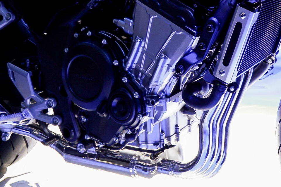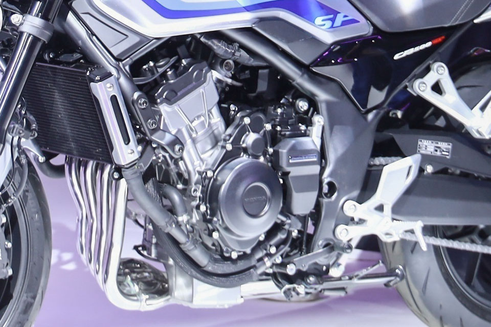 雖然 CB500SF SUPER FOUR 繼續使用鋼管車架及長方型尾搖臂,但經過重新設計後,外觀與 HORNET 750 及 CBR250RR 使用的車架相似,尾搖臂用鋁合金製造。新車少不了當然是直列四汽缸引擎,配上立立令的不鏽鋼四條焦排氣管,而 HONDA 更被喻為是發揚四缸主義的車廠。