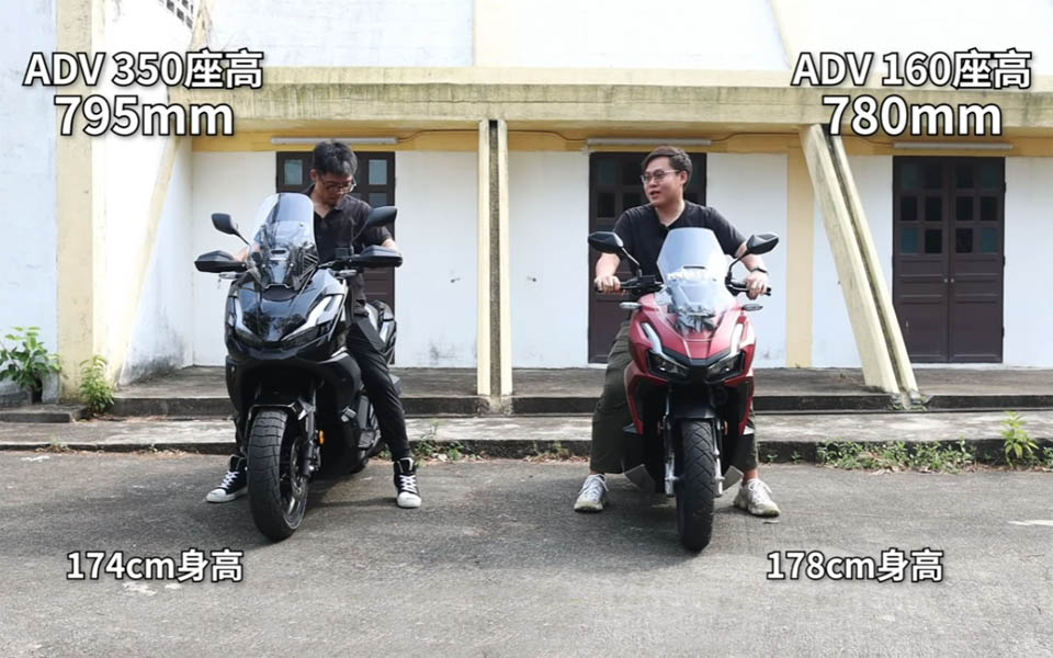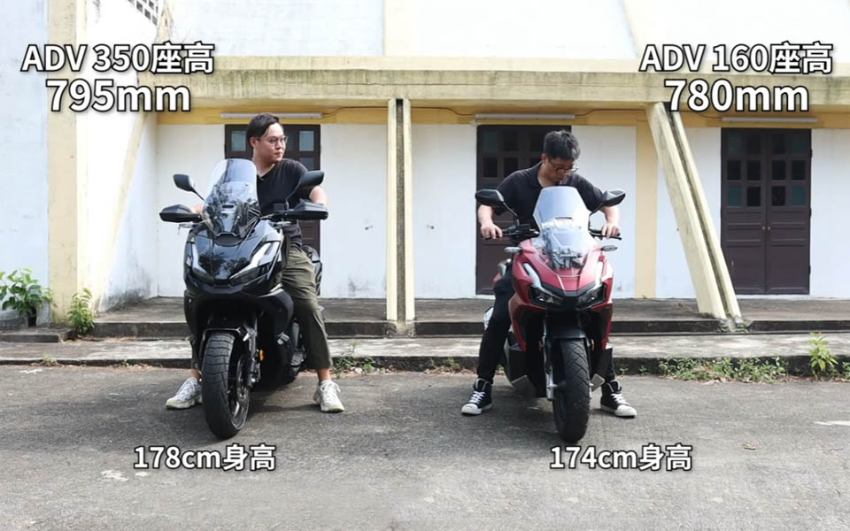 ADV350 座位高度 795mm、ADV160 座位高度 780mm 兩者均可以雙腳平放。