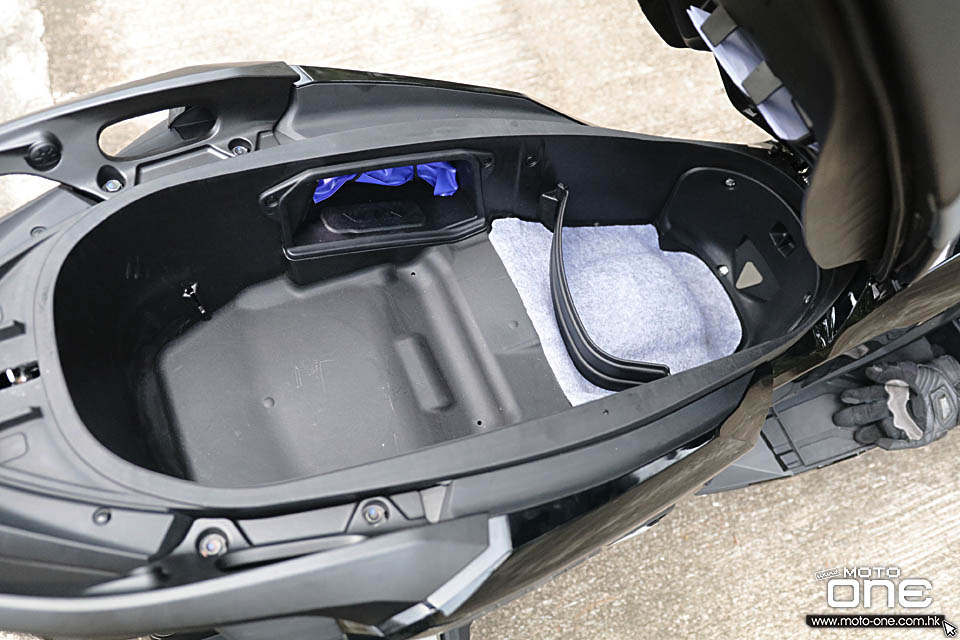 ADV350 座位下方配備48L儲物空間,內設有可移動的隔板。