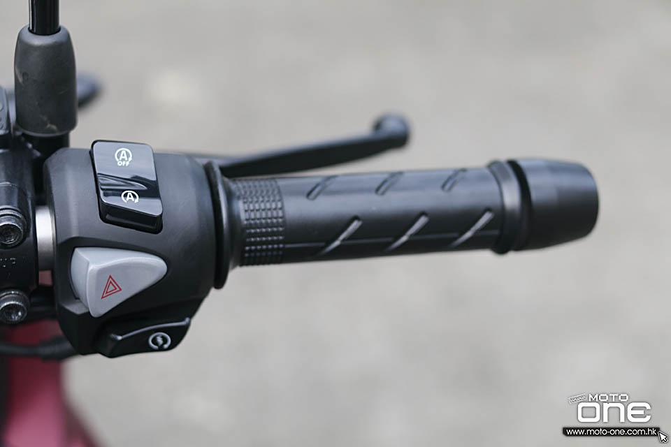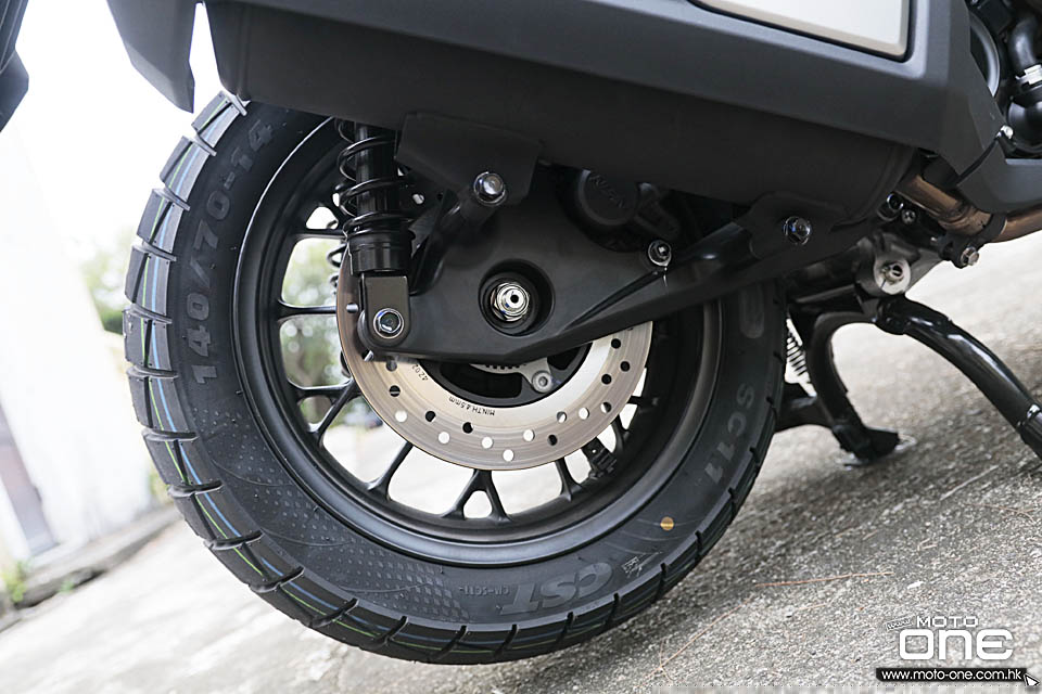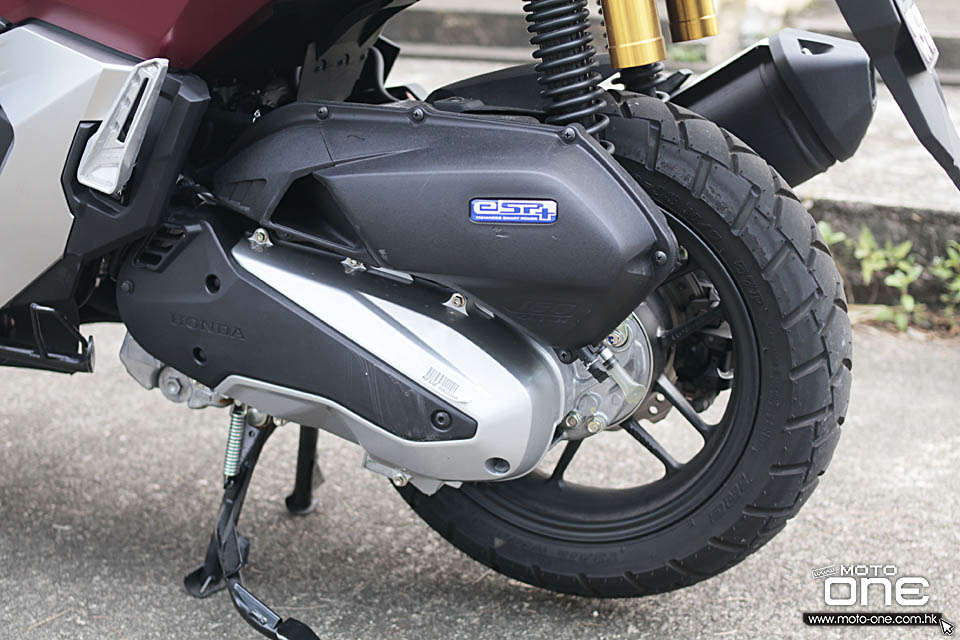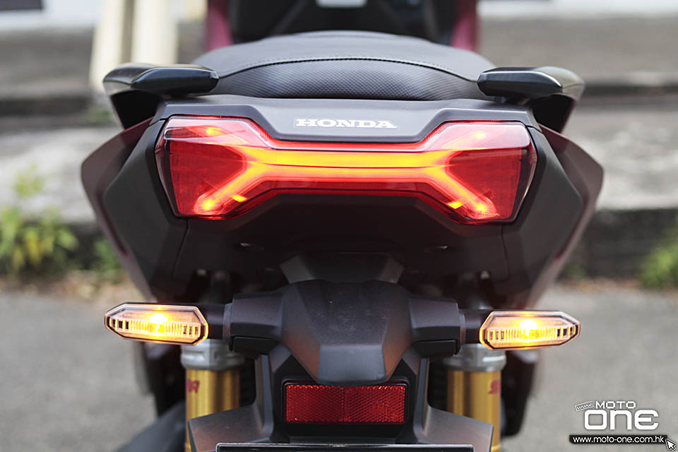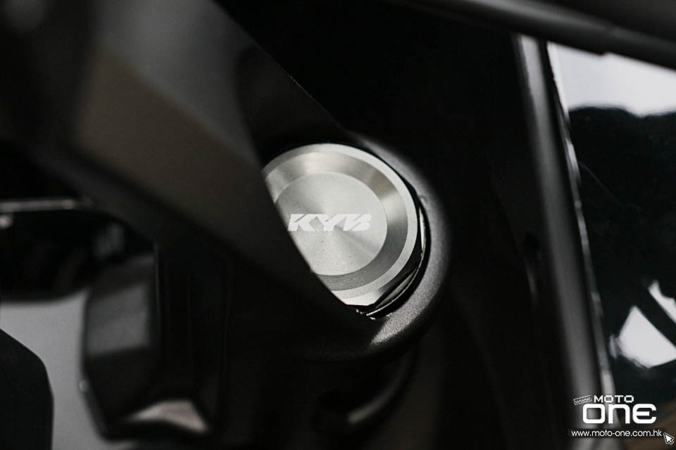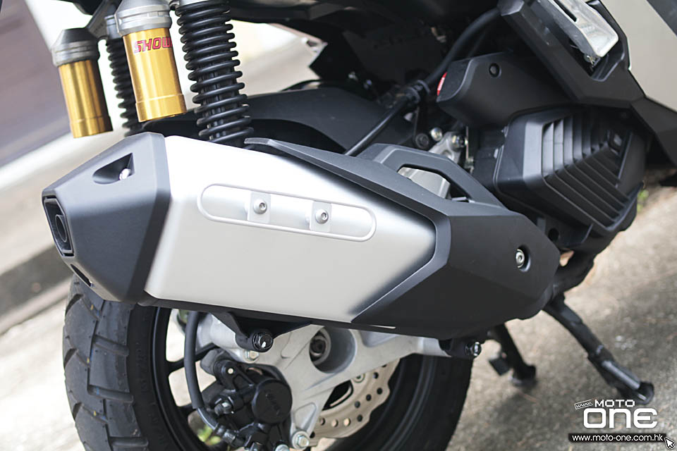 澳門版 ADV350 使用 KYB 油壓尾避震,吸震較柔和,過彎穩定度仍然良好。