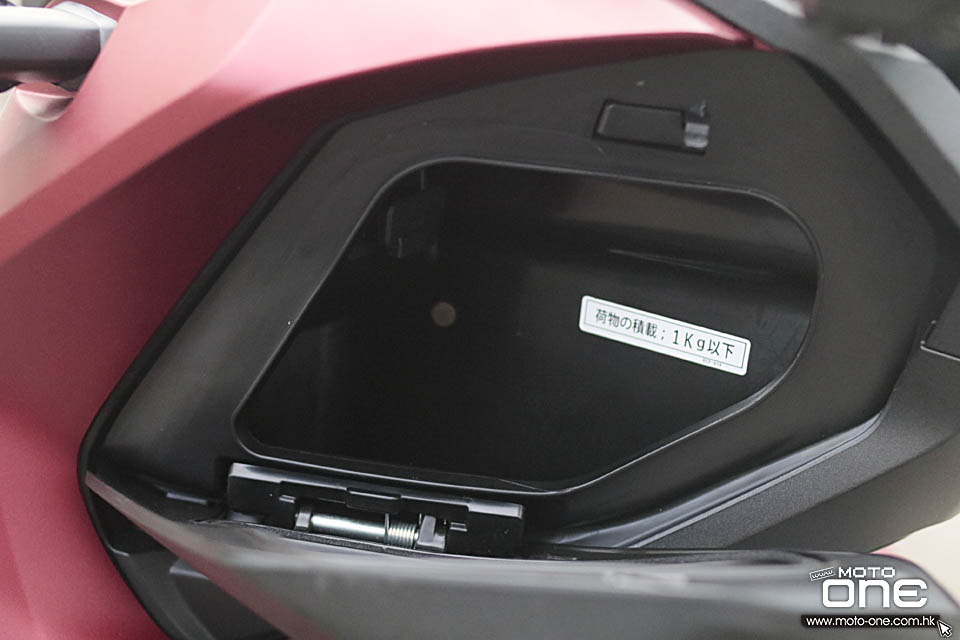 ADV160座位下空間容量29L,可以放下一頂開面頭盔或一頂乘客頭盔,另可加放手套或布冚。