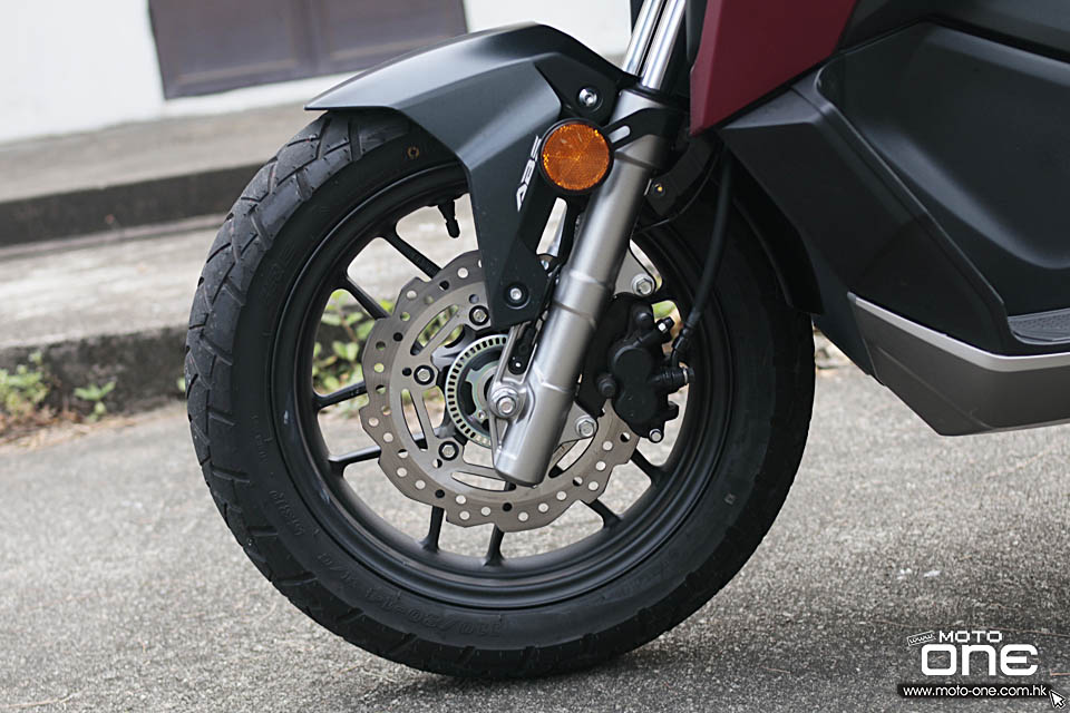 煞車部分,ADV350 前 256mm 雙活塞卡鉗,後 240mm 單活塞卡鉗,配合前後 ABS,煞車感線性而穩定。兩部車同樣配置 循跡系統 HSTC,ADV350 提供兩段可調及可關閉,ADV160 則只有單段。