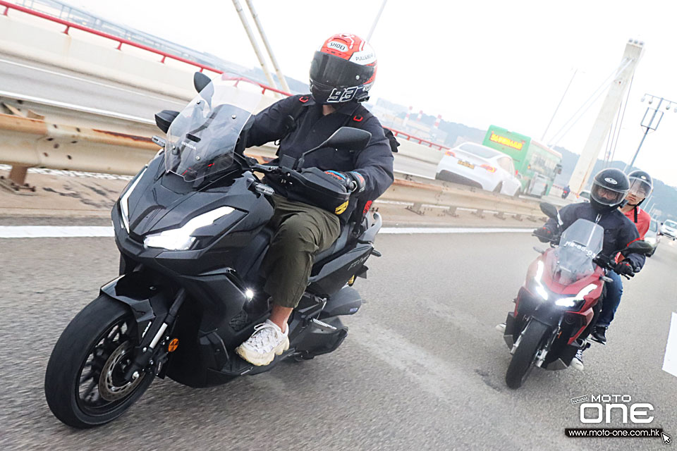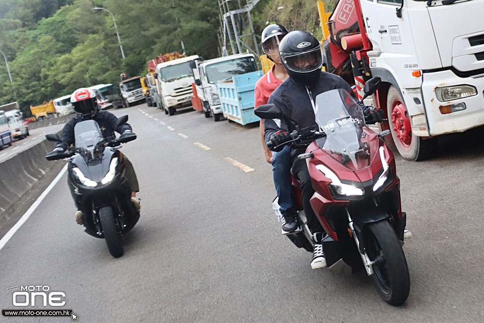 (左)本網編輯ADAM、(右)澳門車友梓揚,在澳門九澳黑沙山路試駕HONDA ADV350及ADV160。