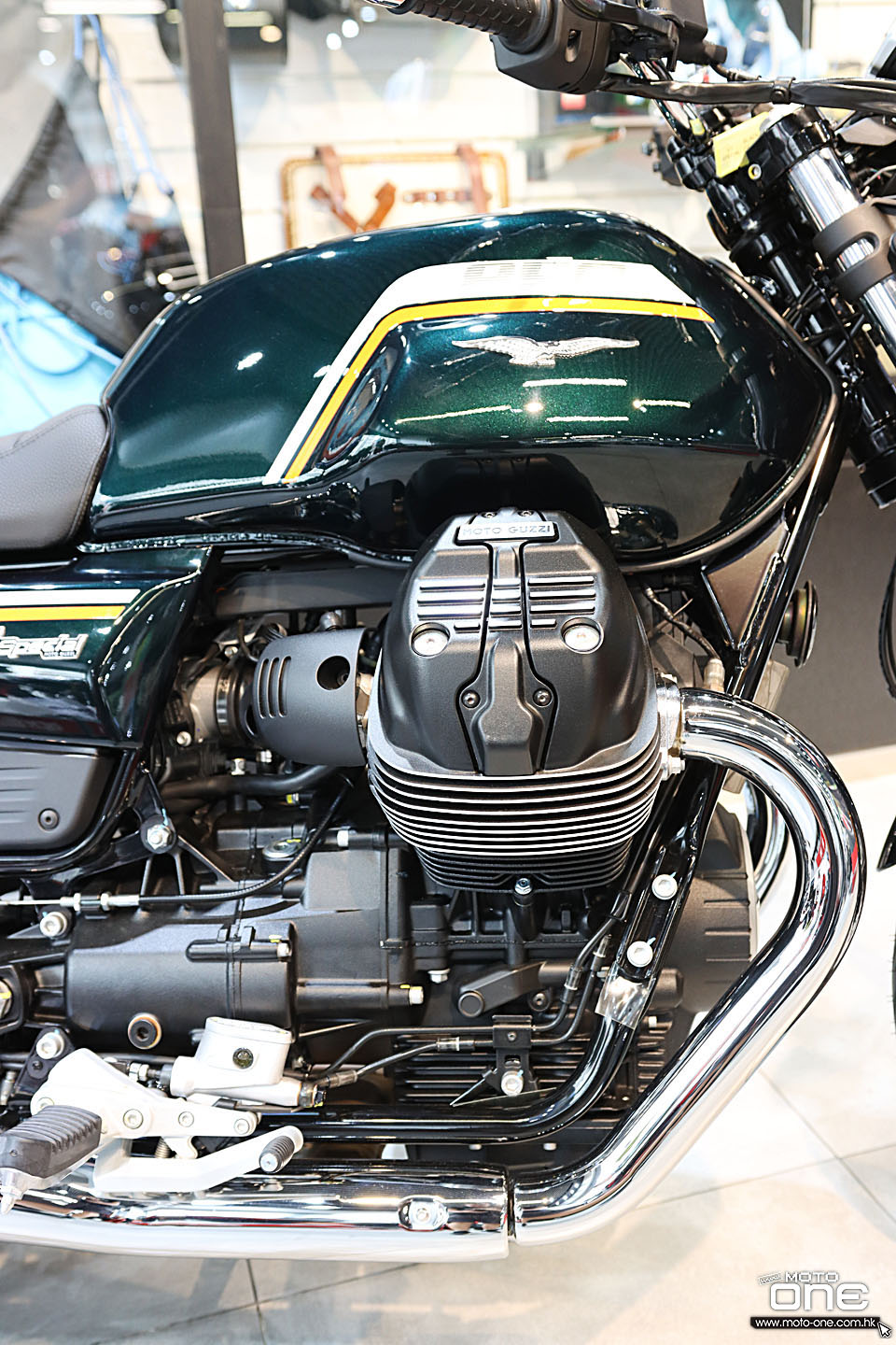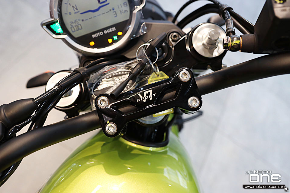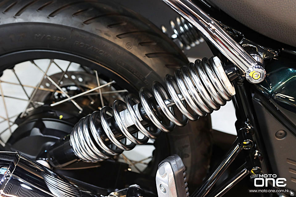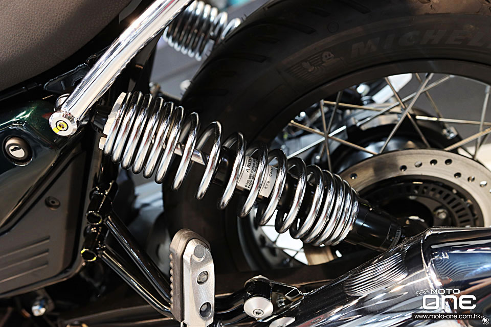 V7 Special Euro5+ 復古街車多處採用電鍍部件,包括:排氣喉、倒後鏡、軑把、乘客扶手、頭燈殼、平衡端子。