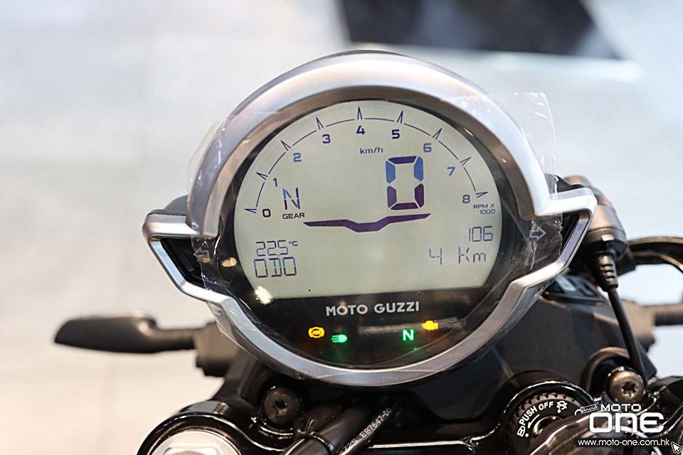 標誌性的 Moto Guzzi 90° 橫向風冷 V 型雙缸引擎配備推桿和搖臂分配,符合歐盟 5+ 標準。排氣量為 853 cc,在 6900 rpm 時輸出 67.3 hp,在 4400 rpm 時輸出 79 Nm 的扭矩,帶來動感十足的駕駛體驗,尤其是在低轉速和中轉速時。擴大的空氣箱、新的正時系統和最佳化的活塞冷卻迴路提高了性能和效率。