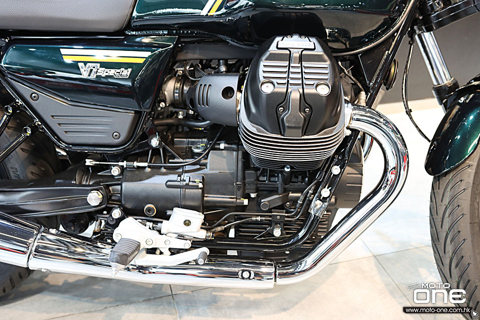 Moto Guzzi V7 Special 的引擎是唯一一款帶軸驅動的 90° 橫向風冷 V 型雙缸引擎。升級到歐盟 5+ 標準,排氣量為 853 cc,在 6900 rpm 時輸出 67.3 hp,在 4400 rpm 時輸出 79 Nm 的扭矩,在中低轉速下表現尤為出色。簡而言之,性能更先進、效率更高,當然還有獨特的 Moto Guzzi 聲音。