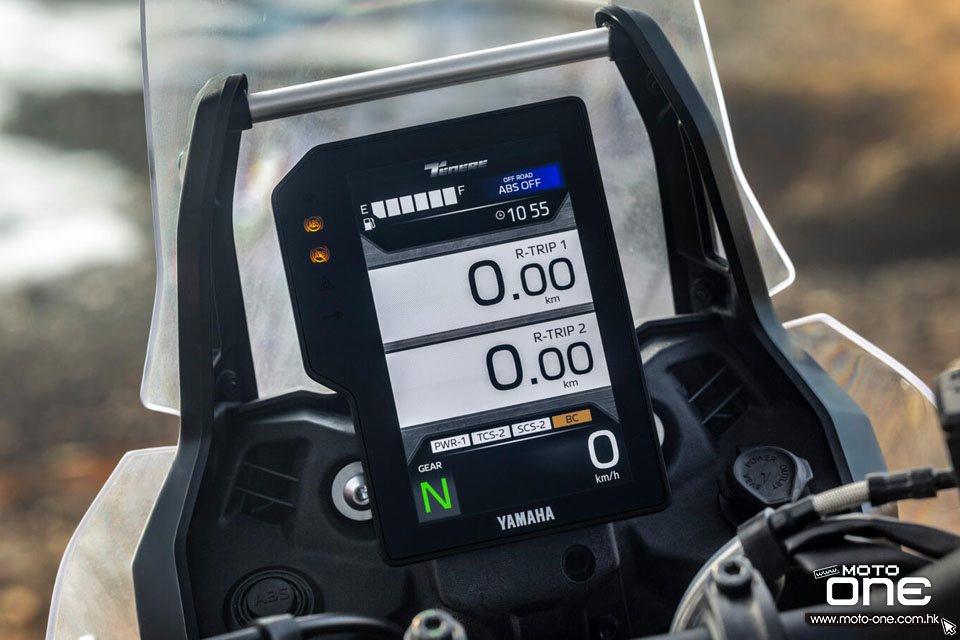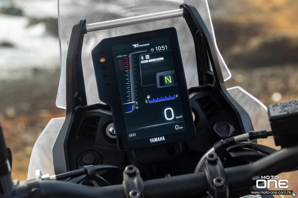 雖然上一代 Ténéré 700 已採用 5 吋 TFT 彩色屏幕,但 2026 年版提升至全新的 6.3 吋全彩 TFT 顯示屏,依然採用垂直設計,無論坐姿或站立駕駛都能清晰顯示行車資訊。螢幕提供三種顯示主題——STREET(街道)、EXPLORER(探險)及 RAID(越野競賽),分別針對不同騎乘風格與環境設計。