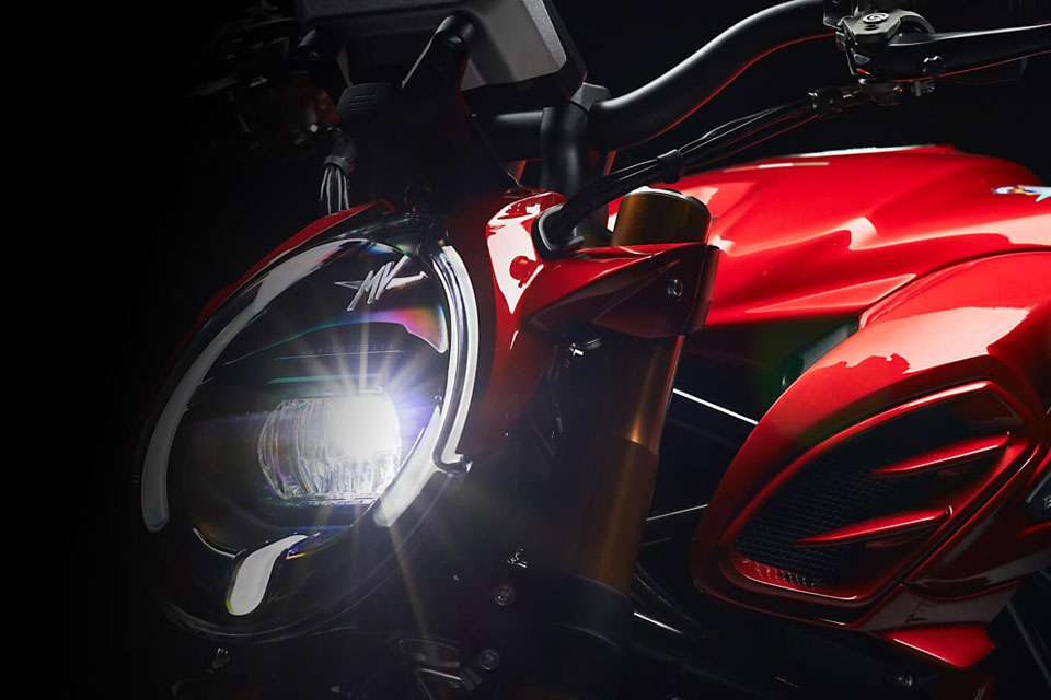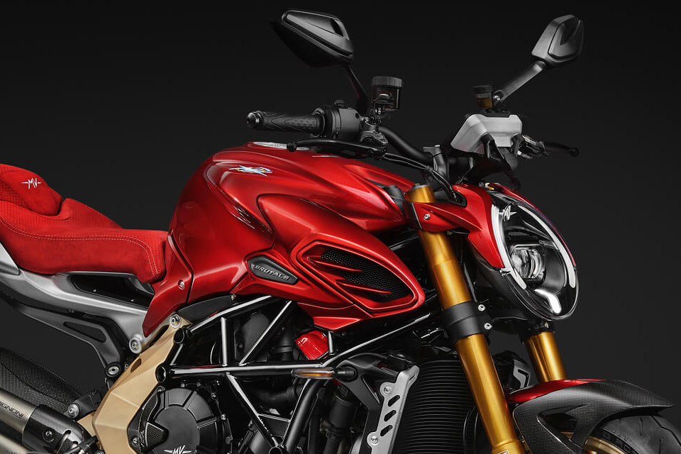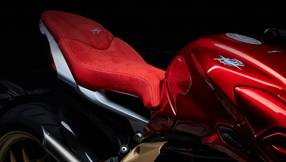 車身幾何經過重新設計,配上全新軑把、腳踏位置與油缸造型,提供更自然、更好操控的騎姿。座墊亦完全重新開發,使用紅色 Alcantara 麂皮包覆,墊層更寬厚,並採用新密度泡綿以兼顧舒適與支撐力。軑把位置較高且更前,改善操作槓桿感,同時新包圍與車身線條延續 Brutale 系列的設計,結合傳統美學與現代空氣動力學。