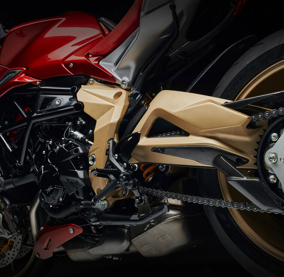 每部 Brutale Serie Oro 皆於意大利工廠手工裝配。特別版 Serie Oro CTG 提供 Pearl Red(珠光紅)與 Silver Ago(阿戈銀)兩款配色,以致敬 MV Agusta 的賽車傳統。