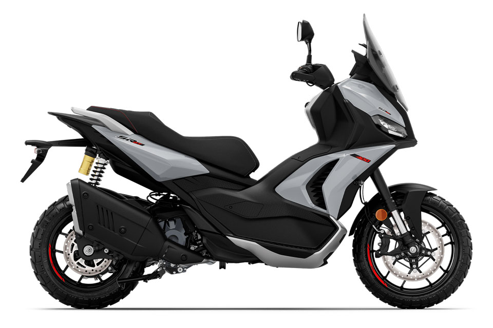 掣動系統亦同步升級。前方配置 300mm 浮動煞車碟配放射式四活塞卡鉗,後方為 240mm 浮動碟配雙活塞卡鉗;相比 SR-GT 200 的 260mm 菊花碟配 Nissin 雙活塞卡鉗及 220mm 後碟,新車的掣動性能明顯更強。
