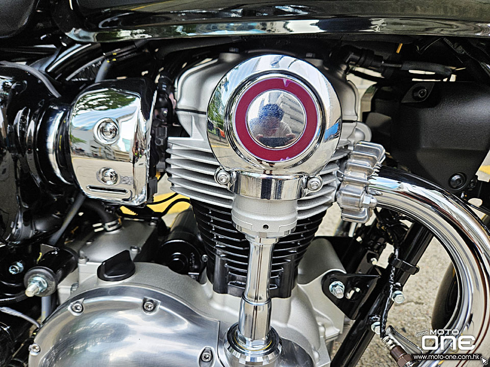 懷舊味極濃的電鍍油缸及風冷直二引擎。