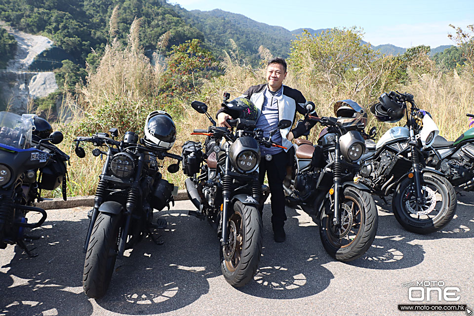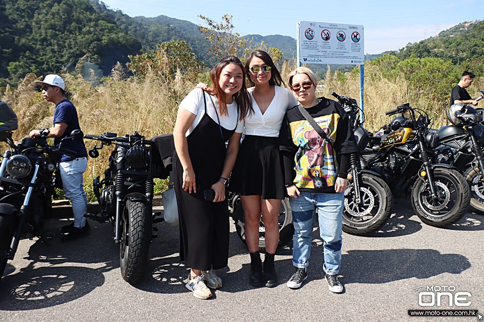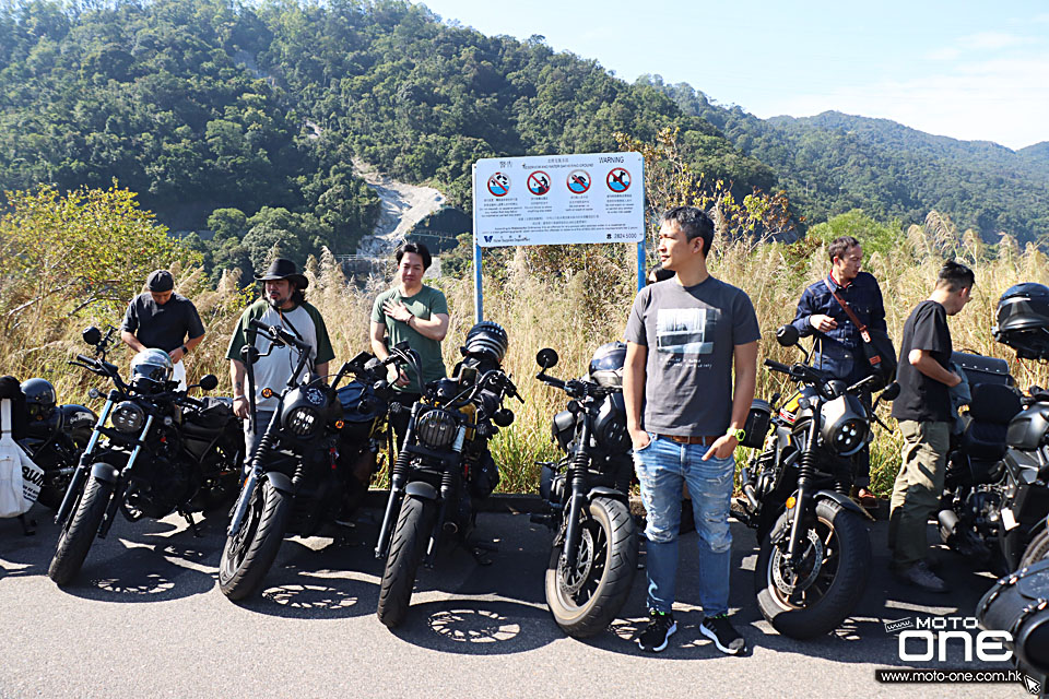 當日天氣清涼舒適、風和日麗,非常適合以巡航為樂的 REBEL 騎士出遊。首站城門水塘水壩是熱門「放飛機」地點,景色怡人;REBEL 大隊整齊排陣後,來了一張開心大合照,隨即再浩浩蕩蕩駛往大尾篤。
