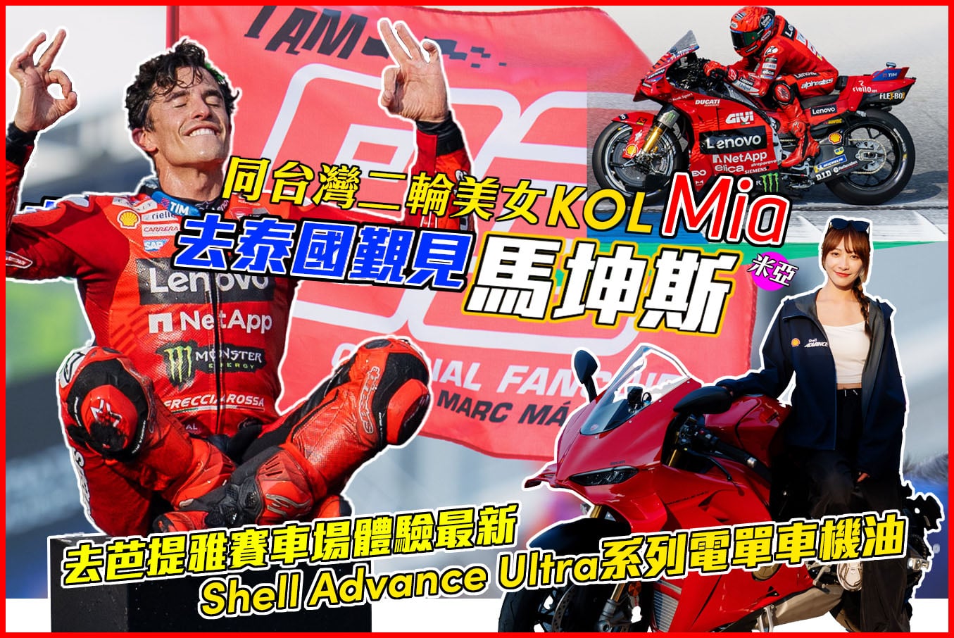Shell Advance Ultra API SP升級機油體驗 相信Shell V-POWER無須多介紹,呢款汽油廣受二輪及四輪車迷歡迎,最為經典就是【飛咩路K吖兄弟?】的攪笑對話。至於Shell的機油,就連部份電單車行家都以為Shell只有四輪用機油,而沒有推出兩輪專用機油。事實上,Shell Advance Ultra系列即將推出兩款專為香港環境調配的電單車機油,分別給棍波車及自動波綿羊使用,因此Shell香港機油邀請本誌及台灣人氣KOL - Mia,前往泰國芭堤雅BIRA賽車場了解新電單車機油的特性,之後乘內陸機前往武里南,觀賞2025 MotoGP揭幕戰,與馬坤斯近距離接觸。