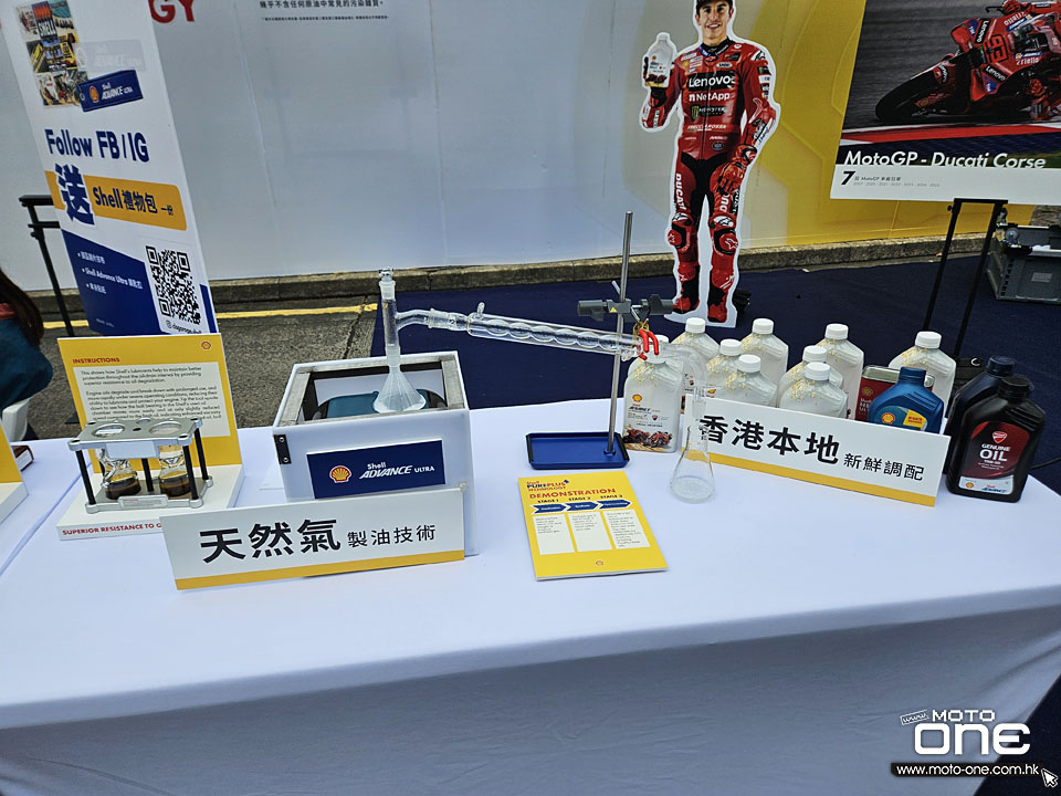 SHELL 機油展示頂級賽車科技與本地調配技術 - 2025香港電單車節 如果讀者有收看 MotoGP,同時亦是 DUCATI 及馬坤斯的 Fans,一定曾經留意到 DUCATI 的 MotoGP 廠車上印有 SHELL 的商標。事實上,DUCATI 自 1999 年出戰 WSBK(世界超級電單車賽)開始,便一直使用 SHELL 機油,而 DUCATI 於 2003 年首次進軍 MotoGP 後,亦同樣沿用至今,雙方合作關係已超過二十多年。因此,SHELL 今次在香港推出全新 ADVANCE ULTRA 機油系列,亦特別採用 DUCATI 廠隊作為包裝設計主題。適逢 2025 年香港電單車節於 12 月 7 日舉行,SHELL 亦於現場設立大型展區,展示其源自賽車技術的高性能電單車機油產品,並透過多項技術示範,向車迷講解機油在引擎保護、潔淨效能及耐用性方面的重要作用。