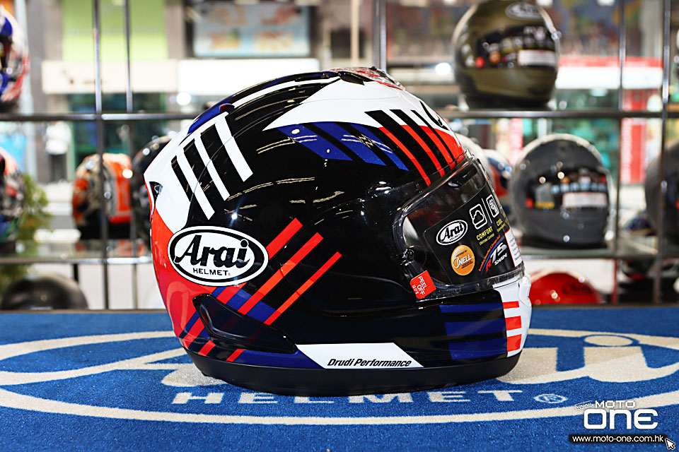 今次推出的 ARAI RX-7X REA SB3,是李亞比賽系列的第三款紀念拉花頭盔,造型設計源自他於 2025 年效力 WSBK YAMAHA 車隊時所配戴的比賽頭盔,由著名設計團隊 Drudi Performance 親自設計。整體以紅、白、藍及黑色線條交織而成,營造出強烈速度感與賽道氣息,同時延續 ARAI 低調而專業的賽車風格。