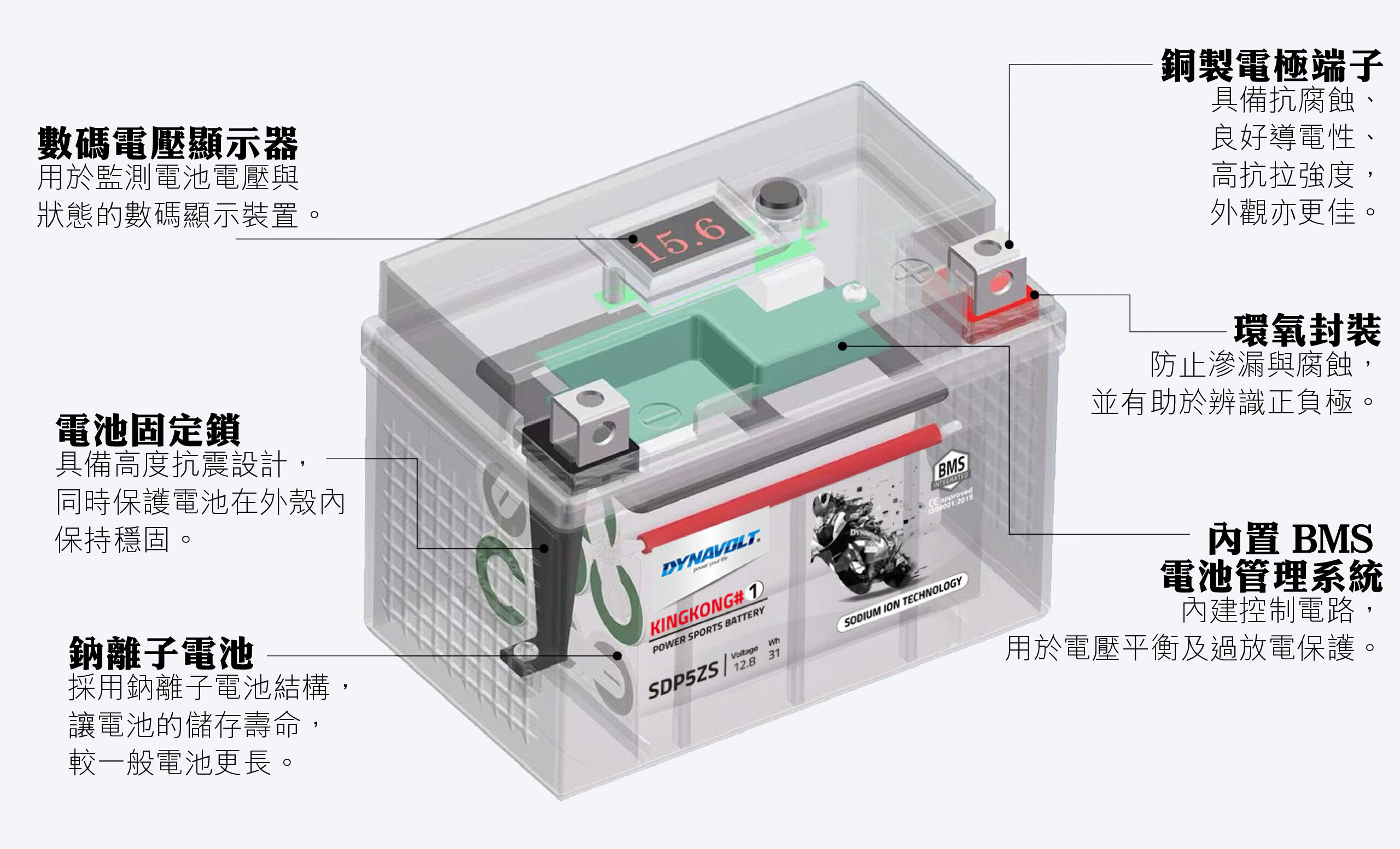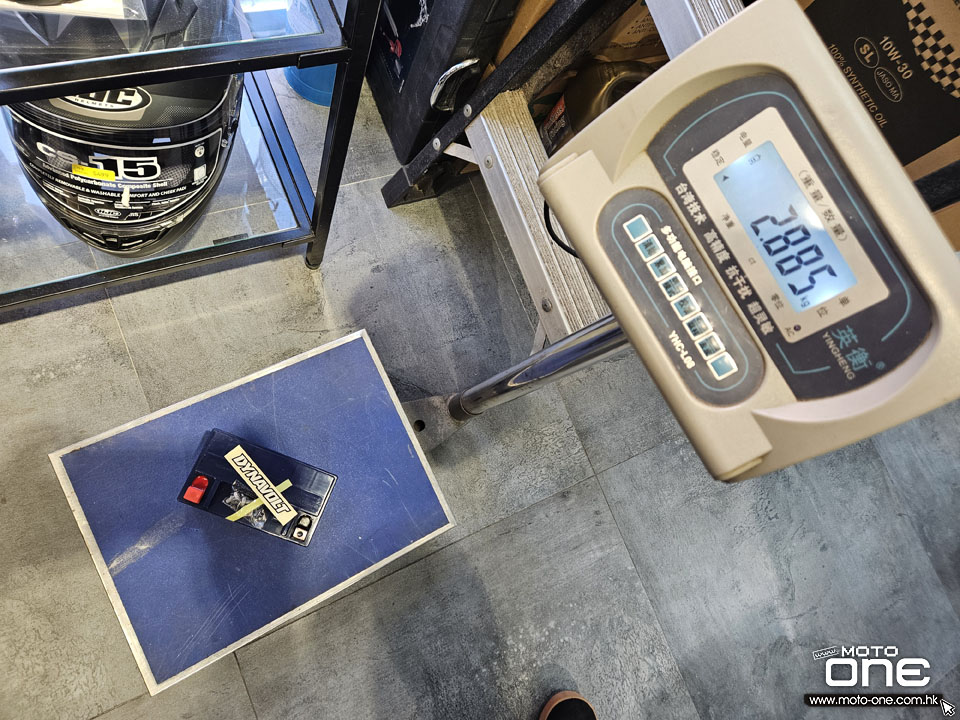 今次並將Dynavolt 同級的鈉離子電池與啫哩電池作重量的比較,鈉離子電池重量為1.205kg、啫喱電池為2.885kg,僅啫哩電池重量的41.7%,大幅減輕,且具備更強的瞬間放電能力(俗稱「夠力水」),車輛行駛時的動力回饋非常紮實。