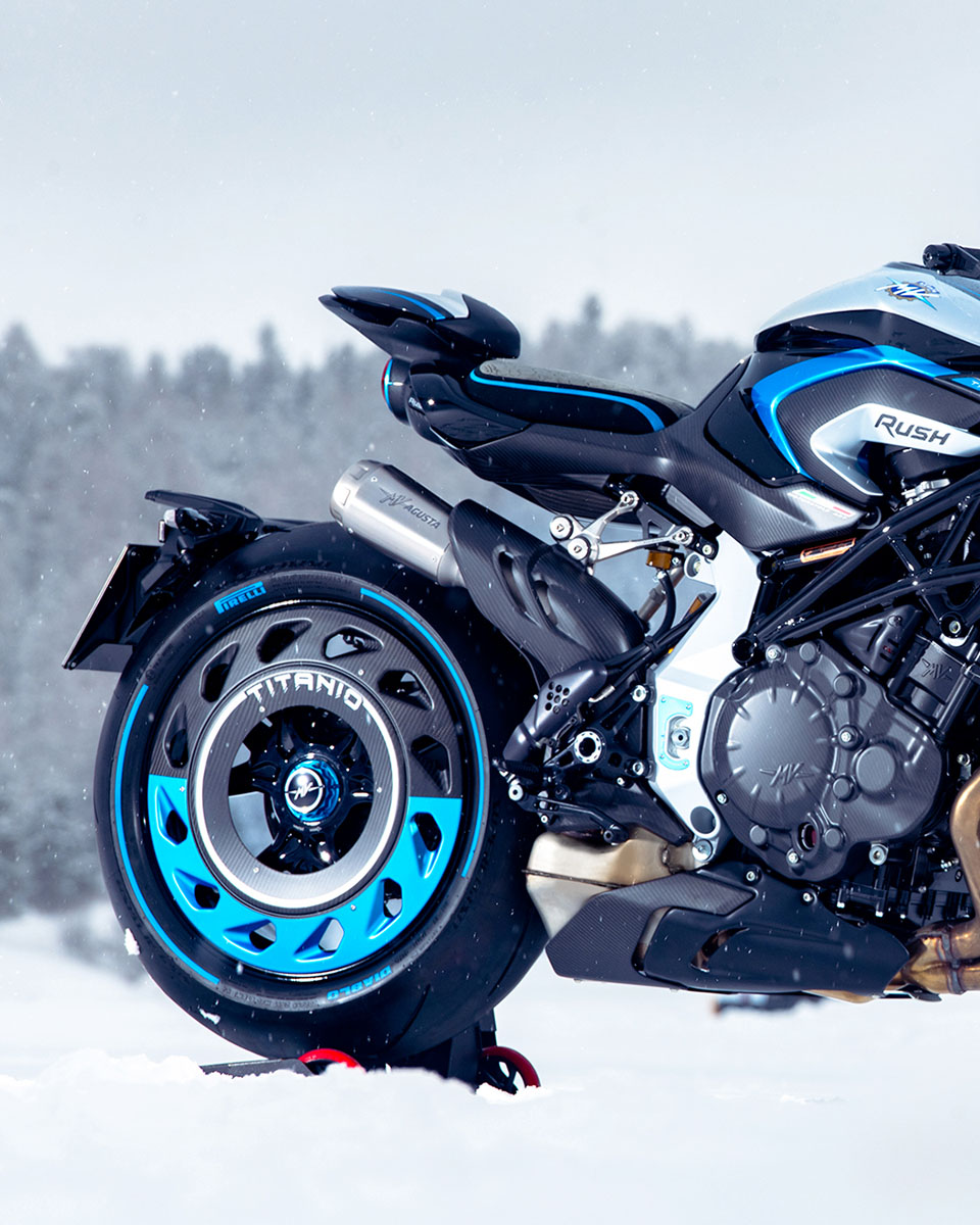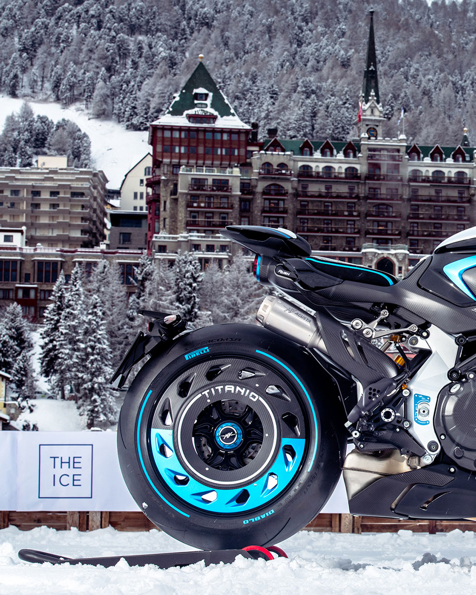MV AGUSTA選擇在「The I.C.E.」(1月30日至31日舉行)發佈RUSH TITANIO,這項每年冬季在瑞士聖莫里茨舉行的傳統古董車盛會,主辦方會在冰雪環境中展示及安排珍稀汽車與電單車進行動態或靜態展示,藉此突顯機械工程、設計美學與生活品味之間的關係。所以MV AGUSTA選擇在The I.C.E.發佈RUSH TITANIO,象徵著車子極具收藏價值。