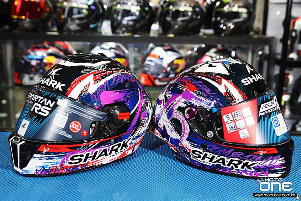 今次利力新返了沙高(Johann Zarco) x SHARK AERON GP FIM RACING #1 REPLICA ZARCO SIGNATURE 2025 - FIM 2 最新認證大尾翼賽車頭盔及SPARTAN RS CARBON ZARCO SIGNATURE碳纖維全面頭盔,兩款均以相同彩色藝術拉花設計,並備有沙高(Johann Zarco) MotoGP的JZ5編號,突顥他的專屬設計。