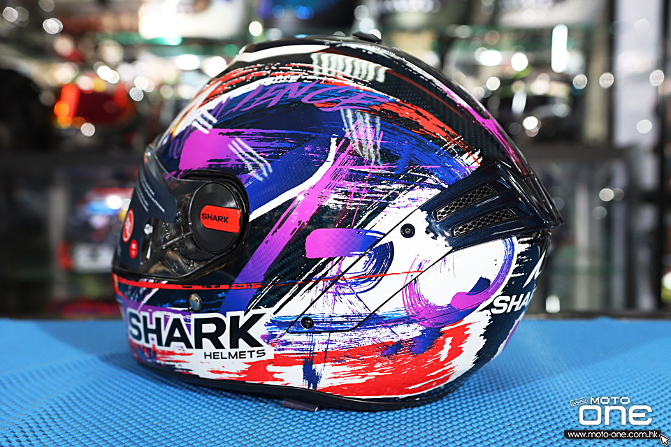 SHARK SPARTAN RS CARBON ZARCO SIGNATURE SPARTAN RS CARBON 安全帽採用「肌肉車」設計,內裝採用穿孔仿皮,展現其獨特魅力。