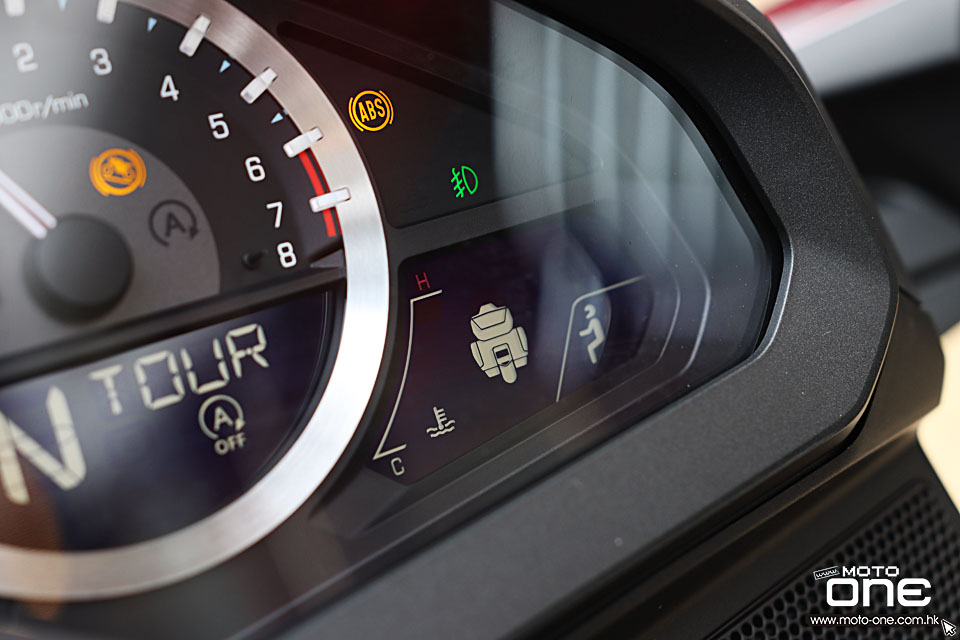 ●斜路防溜後功能(Hill Start Assist) 初現於四輪的防溜後功能已逐漸移植於二輪上,當騎士在斜路停車後,只需要大力扣下煞車桿,以啟動ABS控制尾制動,即使鬆開煞車桿,尾掣動可維持3秒運作,以防止車輛溜後,同時可讓騎士更流暢地起步。當斜路溜後功能啟動時,轉數儀錶會亮起HSA(Hill Start Assist)燈號。