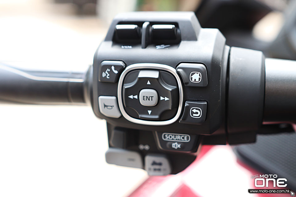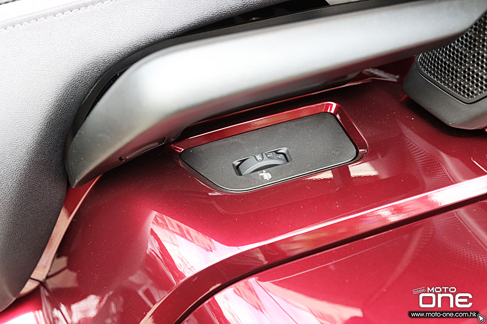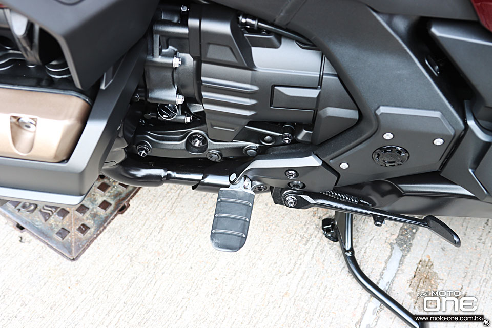 ●怠速熄火(Idling Stop)-一體式起動摩打及發電機 使用一體式起動摩打及發電機的新GOLD WING加入怠速熄火功能,例如駛至交通燈後靜止3秒,引擎自動關掉,只要扭動油門,引擎重新啟動,目的是減低耗油量,而設於右制盒上的按鈕可選擇開或關怠速熄火功能。根據之前駕駛同樣有怠速熄火功能的HONDA PCX經驗來看,相信GOLD WING同樣有暢順的起步效果。