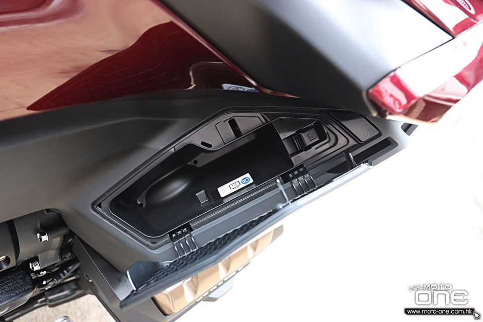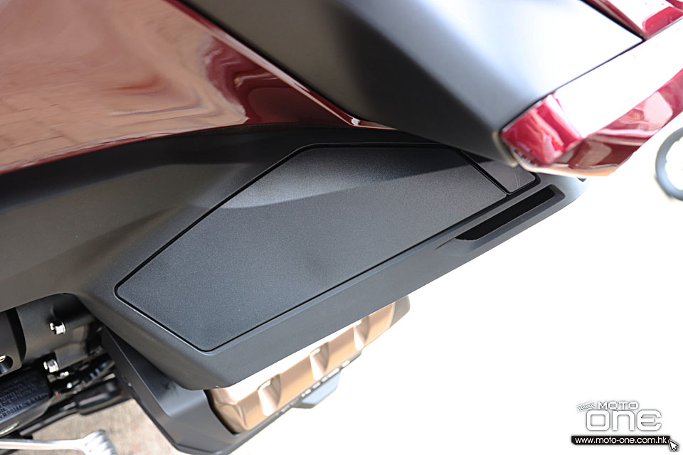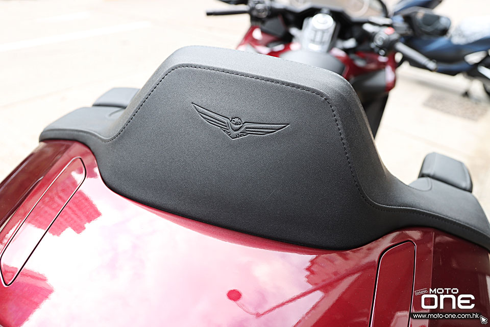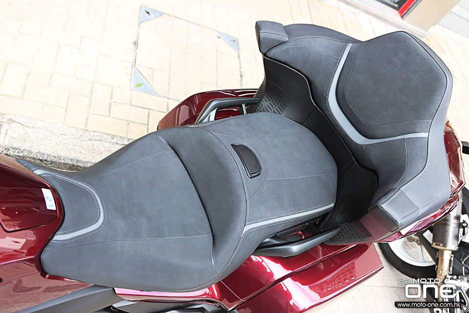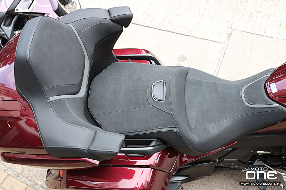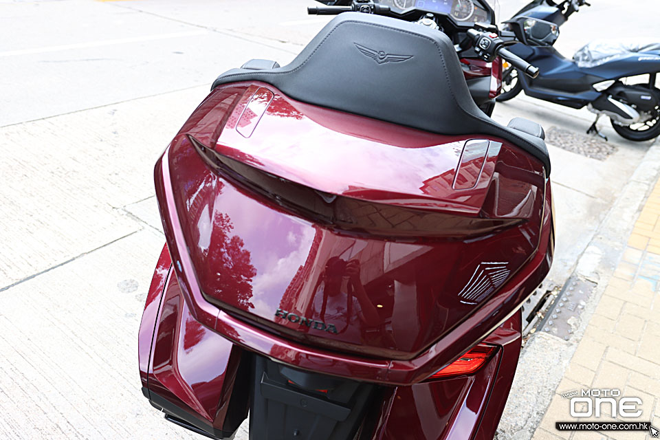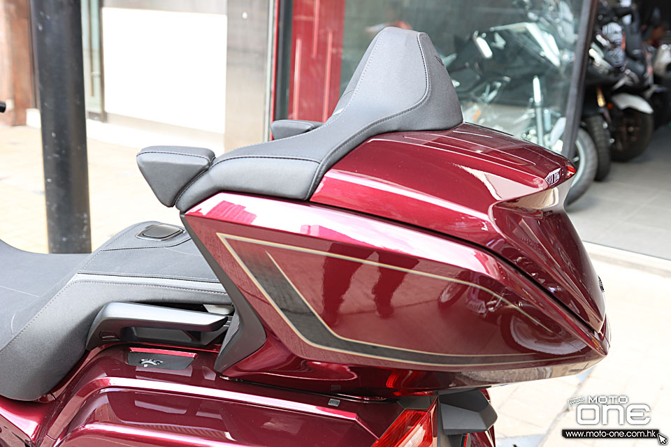 新款GOLD WING GL1800 Tour DCT 配備大尾箱容量為61升,比2020年款的50升尾箱,增加了11 升的容量,更為實用。而新款大尾箱頂部已新設預留安裝貨架的鑽孔位,無需像2020年要人手鑽孔,如安裝貨架更容易、位置更準確。新款乘客椅背座墊剪裁更立體更豪華,而乘客扶手空間更大,更就手。